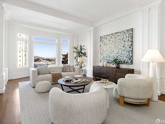 Grand half-floor residence in one of Pacific Heights' most iconic pre-war buildings. Spanning approx. 2,000 sq.ft., Residence 2W offers 3 bedrooms, 2.5 baths, and sweeping Bay and Alcatraz views from the formal living and dining rooms. Classic architectural details include a marble fireplace, soaring ceilings, intricate crown molding with ornamental plasterwork, built-in shelving, and hardwood floors. The corner primary suite features southern and western exposures, a walk-in closet, and an en-suite bath. A second en-suite bedroom with walk-in closet and a third guest bedroom and half-bath provide flexibility. While the kitchen and baths retain their original mid-century finishes, the home presents an outstanding opportunity to reimagine within a framework of timeless scale and elegance. Additional features include in-home laundry, dumbwaiter, 2-car parking, large storage room, a live-in residence manager, and access to the residents' private park an expansive landscaped garden unique to 1940 Broadway. Residence 2W offers a rare chance to create a bespoke Pacific Heights home of distinction. Now celebrating its centennial, 1940 Broadway has recently completed major infrastructure upgrades to usher the building into its next century.