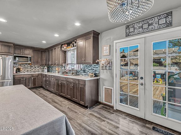 Step through the front door and into a world of warmth and natural light with a layout that has been designed for both comfort and function. The entryway opens into a spacious living room, where large windows invite in soft natural light throughout the day. The fireplace—a true centerpiece of the living area—adds a sense of coziness, ideal for those crisp Nevada evenings with family or guests gathered around.