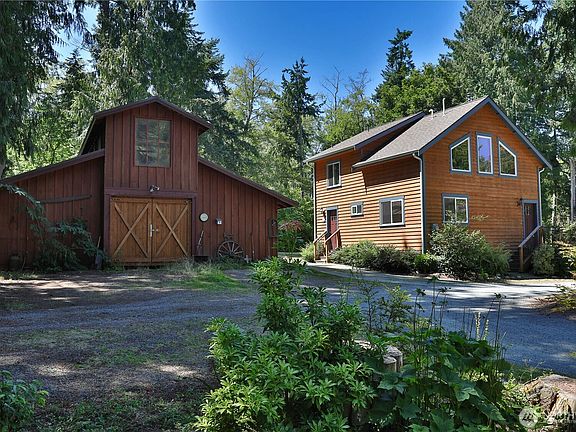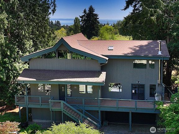 Two separate beautiful homes set on a stunning Whidbey Property close to Double Bluff Beach. Short term rent one, live in the other. The main home, a Contemporary Lindal Cedar home, Mt. Rainier & City views from every window & true wrap around deck. The spacious main floor boasts a tastefully renovated kitchen, floor to ceiling windows, great room w/ wood stove, dining area w/vaulted ceilings & an office. Upstairs is a master suite, 2 bedrooms, + flex area. A separate suite below with full bath & private entrance. The Cottage, A 2018 built 3 bedroom, 2 bath, 1000+/-sf custom DADU is placed in the sun next to the custom 2 stall barn w/ loft. Mature cedars, orchards, trails, all placed thoughtfully on the beautifully wooded acres 5 ± acres.