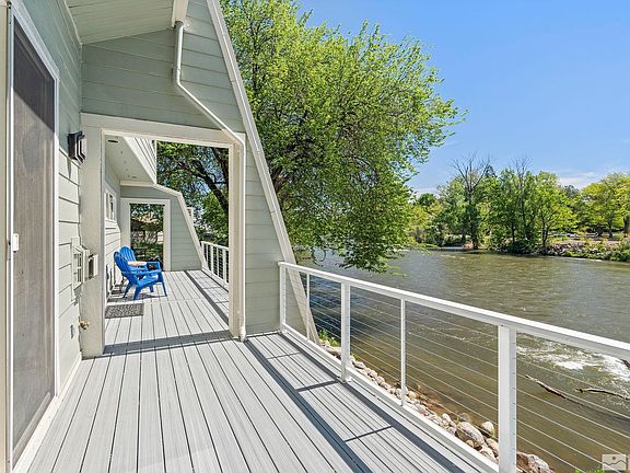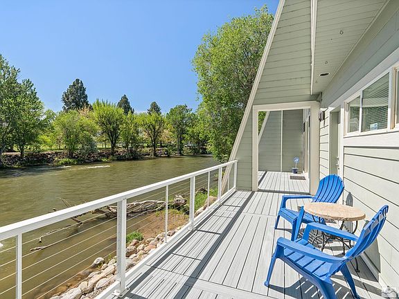 Discover luxury living in this stunning riverfront townhome, a generous double end unit that offers unparalleled tranquility and modern amenities. Outdoor spaces include an expansive new TREX double-sized deck, newly installed Fall 2023, and your own beach right on the river for kayaking and tubing. Listen to the sound of the river as you relax or entertain al fresco. HOA fee includes flood insurance, water, trash, exterior and common area maintenance., Cozy up by the living room fireplace while the wall of windows allows you to gaze out across the water. This open-concept ground-level gathering space includes a lovely kitchen with seated bar for casual dining and a GE appliance suite. Second-floor media room features a wet bar with two beverage refrigerators, ideal for movie night or the big game. Huge primary suite features corner fireplace, walk-in closet, and en suite bath with double-sink vanity. Light, bright third-floor loft-style bedroom is enhanced by skylights and offers added privacy. This stunning residence features a completely new roof (Fall 2023) with extra foam thickness under TPO for superior noise control and the convenience of new insulated flex ducting (Dec. 2023) for HVAC in the crawlspace. There’s also an oversized 2-bay garage for sheltered parking and storage. Inside, the home boasts newer Hunter Douglas window coverings, some power-controlled, as well as newer carpet, hardwood flooring, and interior paint throughout. Located enviably close to two community parks offering mountain views, downtown dining and shopping.