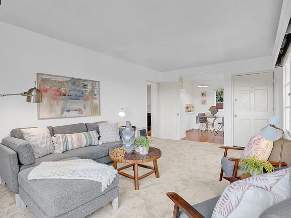 Lovely multi-family home on a spacious 6,300 sq foot lot, located hillside in the desirable Highland Park neighborhood. Incredible opportunity to own a cash flow income property. This 4-unit home features an attached 3 car garage, shared laundry room and a community backyard. Each unit is approximately 626 square feet with 1 generously sized bedroom, bathroom with a shower/tub combo and features large windows with a light and bright living room, dining area and full kitchen. Each eat-in kitchen offers white cabinetry, tile countertops, refrigerator, large stainless steel sink, gas stove/ovens and dining area. Hardwood flooring in dining rooms and kitchens in several units and carpet in bedrooms. Yard area includes multiple patios, garden planters and seating areas with views. Minutes to Lake Merrit, Montclair, shopping, restaurants, parks, Bella Vista Elementary and easy access to HWY 580.