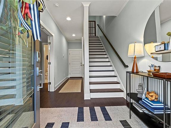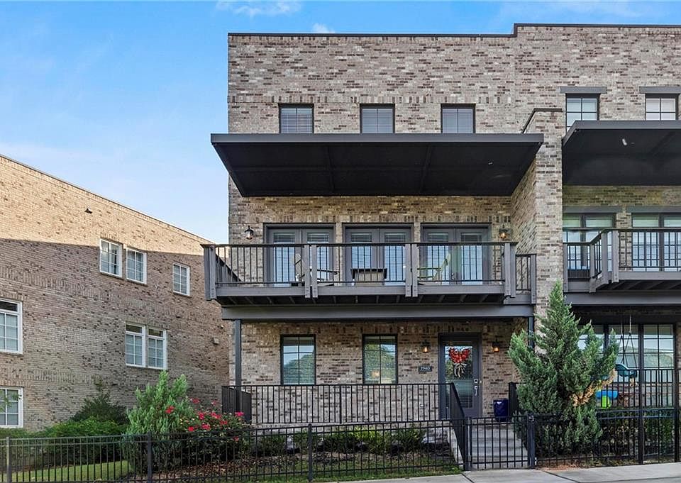 Welcome home to this beautifully designed end-unit townhome in highly coveted Westside Station, where modern design meets comfortable, family-friendly living. Natural light fills every corner of this 4-bedroom, 3.5-bath home, highlighting hardwood floors, quartz countertops, and designer finishes throughout. The versatile entry-level suite with a full bath offers the perfect setup for guests, a private home office, or a 4th bedroom. Upstairs, the open-concept main level is the heart of the home—featuring a spacious kitchen with an oversized island, dining area, and inviting living space that flows seamlessly to the covered deck for effortless indoor-outdoor entertaining. The top floor hosts the serene primary suite with a walk-in closet and dual vanities, plus two additional bedrooms and a full bath—ideal for family, guests, or a growing household. This particular townhome has the largest fenced side yard in the community. Enjoy the convenience of an EV charging station in the garage and the charm of a vibrant community offering a pool, clubhouse, playground and green space. With direct access to the Whetstone Creek trail and the BeltLine, Westside Village, and Atlanta’s best dining and retail, this home combines the ease of townhome living with the lifestyle you’ve been looking for.