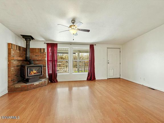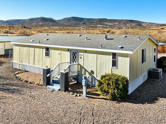 1997 Cavco manufactured home that backs Coconino National Forest on .33 of an acre with 1188 square foot home, 3 bedrooms, 2 bathrooms, split and open floor plan with a small island to add workspace in your kitchen. Wood stove to help keep you toasty during our cooler times. Heat pump for A/C and heat. Main bedroom has separate shower and garden tub and walk in closet. Fenced back yard with storage shed or fantastic work space area. Covered back porch with some mountain views and great bbq space. Large gates on each side yard fence for back yard access, tons of extra parking and circular driveway. This is not the home's original placement, is the ''second placement or set down''. Cash, possible VA or 21st Mortgage Corporation lending options.