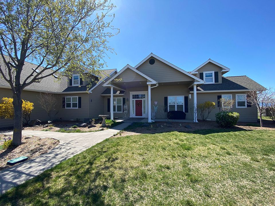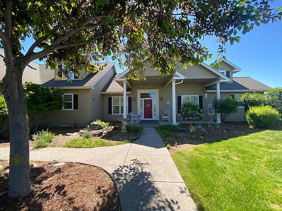 Wake up each morning to stunning mountain views from this gorgeous home located on a ridge over looking the Cascades. Enjoy the city views and watching so much activity from the planes at the airport to animals at the ranches to the train below that looks like your own model train set. This will be your happy place. The owners turned this home into their forever home by repainting the interior and repairing most items from their home inspection when they purchased. Aging in place is made easy with the wide doorways and arches and all you need on the main floor. The spacious kitchen has all new appliances and refaced cabinets. The wall of windows in the living room have a UV film installed to help with heating and cooling. You will love the oversized heated garage with 3 large doors that can accommodate up to 6 cars or all your toys. What projects would you like to do in this great space? If you're thinking acreage for privacy, then you need to put this special home on your list to