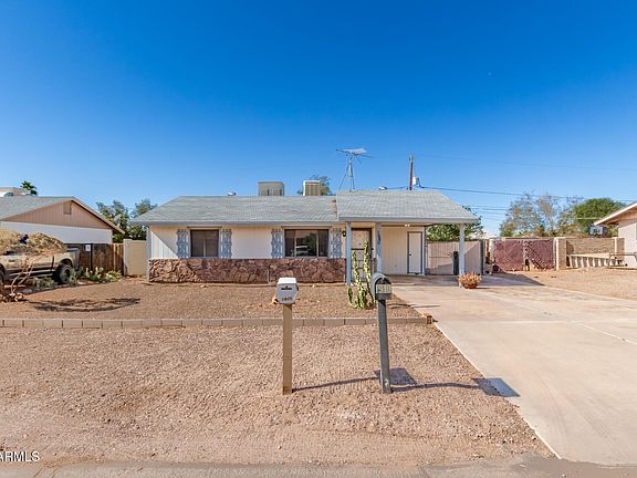 Apache Junction is home to a number of outdoor adventures such as, horseback riding, hiking, camping, biking, and a lot of desert fun. Surrounded by the Majestic Superstition Mountains you will discover wonderful and unique experiences from the local cuisine down to the small-town hospitality. Come make this your home today and see what you have been missing. This property has over 5,900 sq. ft. lot and has no HOA. Rear yard with a block constructed wall and an RV gate. Great for storing your trailers and or your off-road vehicles. While the interior of the home does need some remodeling or upgrading the bones of the home are intact. Offering 3 bedrooms, 2 bathrooms, a spacious living room, a dining room, a nice kitchen area with lots of cabinets, , and the laundry room that is located inside, and the washer and dryer convey. Home is connected to high speed quantum fiber optics. Conveniently located close to the US 60 freeway and the loop 202 making your commute around the valley a breeze. All of this for below $300,000.