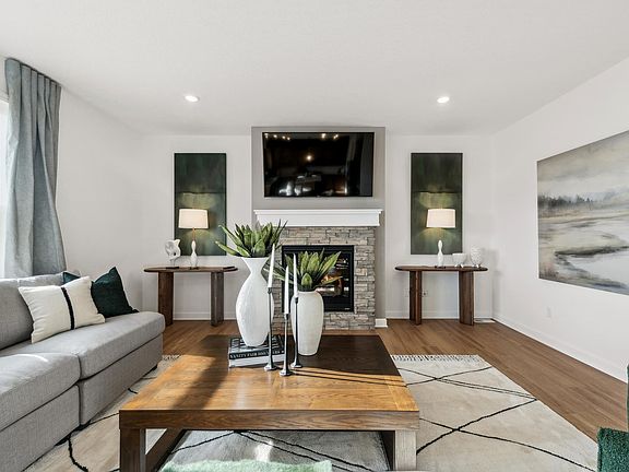 This home is under construction and is available for a May closing date! Welcome to Timber Creek, where the elegant Lewis floor plan combines spacious, modern living with a prime location. This 5-bedroom, 3-bath home is just minutes from Hwy 212 and I-494, with an elementary school within walking distance. The open-concept main level features a bright Great Room anchored by a cozy gas fireplace, a gourmet kitchen with quartz countertops, soft-close cabinetry, designer backsplash, stainless steel appliances, a walk-in pantry, and an oversized square island, as well as a main-level guest suite, a spacious mudroom, and additional storage. Upstairs, four bedrooms await, including a luxurious owner’s suite with a spa-inspired bath, a versatile loft, and convenient laundry. The unfinished walkout basement offers endless possibilities for future expansion, while the fully sodded yard with irrigation and landscaping completes this move-in-ready home. Experience comfort, style, and functionality in the heart of Timber Creek.