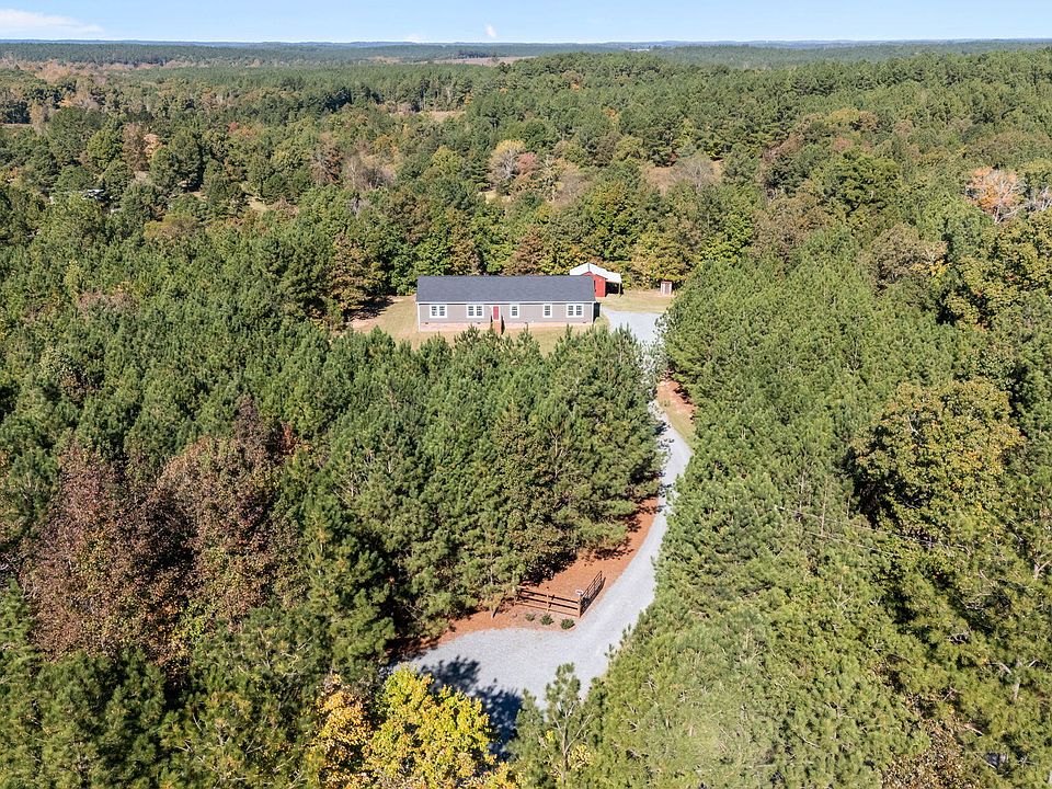 Updated home with an open floor plan on 5 acres! No city taxes! No restrictive covenants! No HOA! Huge island kitchen with lots of cabinets opens to the dining area. 22'X14' living room. The office has a wet bar and mini fridge. The bonus room has a sliding glass door to the covered rear porch! Spend evenings grillin & chillin on the back porch by the fireplace. Wait til you see the primary suite! Primary bathroom has large double vanities, a massive tiled shower and a big walk in closet. The backyard has a 16'X20' wired storage building and a fenced pet area. Gated electronic fence at the road. Updates in the last 5 years: interior paint, LVT flooring, carpet, roof, HVAC, windows, see attached list. This is the one you have been waiting for!