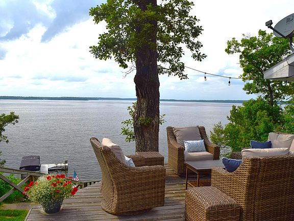 Welcome to the best views on the Lake! You will love this cozy move-in ready lake cabin nestled on nearly a one acre lot with Panoramic views of Big Sandy Lake! Big Sandy is an awesome recreational lake with great swimming, fishing and a number of restaurants and resorts on the lake for dinner or drinks! The primary bedroom overlooks the water, updated bath with granite vanity and claw foot tub! Warm up on those chilly autumn nights with the wood burning stove or have smores by the bon fire flames! The huge wrap around deck offers a stunning sunset over long lake views. There is a detached 2 car garage with spancrete that offers an additional 528 sq. feet of space! Currently being used as storage, this unfinished space would make a great Bunk house for more bedrooms or an amazing Lakeside Lounge with stunning lake views! The possibilities are endless! There is also a storage shed and shelter for your firewood! Dock and boat lifts do not convey.