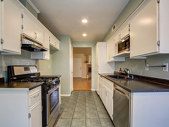 Specious and Bright 3 bedrooms 2 bath corner unit/condo with almost 1200 sqf. Great open floor plan with High Angled Ceilings, Large light living room with Fireplace and a Balcony with Storage area. Spacious kitchen with lots of storage, a Large master bedroom with private bathroom, his and hers vanity sinks and walk-in closet and two other good size bedrooms. Laminate flooring through out the condo, Soundproof walls. Lovely community POOL and SPA with secure gate. Tandem Garage with washer and dryer. Low HOA, Newly painted, Quiet street, Close to all, Shopping, Restaurants, Parks, Freeway.
