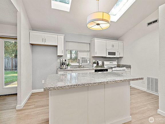 Kitchen features granite countertopsWalk-in closetMature treesFull fencingSkylights for natural light