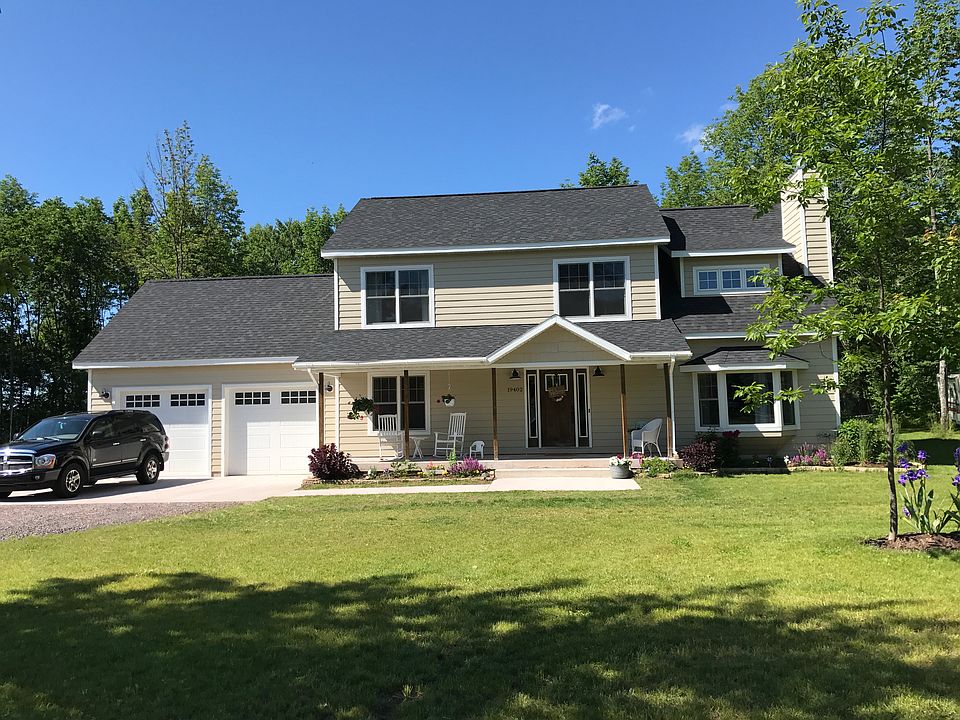 Beautiful, custom built 3 bed, 2 bath home in Isle Royale Estates. This home was built in 2014 with many unique features that include a loft overlooking the great room and rustic, wide plank pine flooring. The main floor begins with the great room that has a vaulted ceiling and a wood burning fireplace (with option for natural gas). The kitchen is open to the great room and has a large island with room for seating, lots of storage, slate appliances (French door refrigerator, gas stove/oven, dishwasher, microwave) that are included with the sale of the home, area of butcher block, built in spice rack, and pantry with custom made doors. Windows above the kitchen sink overlook the spacious back yard. The dining area has French doors that lead outside. Down the hallway to the garage is a full bath and main floor laundry. The garage is fully insulated, has lots of shelving and a workbench area and has hot and cold water. A gas line is set up if you would like to heat it. There are 3 bedrooms and 1 full bath upstairs. A finished bonus room above the garage is currently being used as a large 4th bedroom. The loft is a great space for an office, sitting room or play area. Marvin double hung windows throughout the home provide lots of natural light. This home is very efficient with the majority of the insulation being spray foam, including the basement. Our largest monthly heating bill was under $120 this past winter! The basement has two egress windows and is plumbed for a future sauna, shower and toilet. An attic fan cools down the home with a breeze of natural air after hot summer days. The large front porch is perfect for sitting with your morning cup of coffee or watching the kids play in the yard. A storage shed is located on the property and included with the sale of the home. This home is located approximately 1 mile from the M-26 stop light near Copper Country Ford. In the Houghton Portage Twp School district. It's minutes from town, the schools, and the Dodgeville ice rink is right around the corner. There are township utilities including water, sewer and natural gas. It is located outside of the city so it is taxed at the lower township rate.