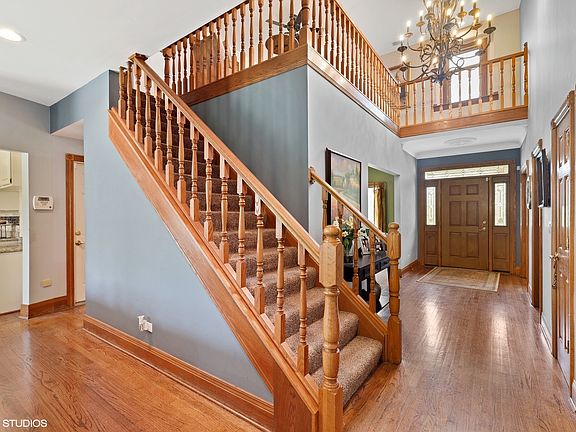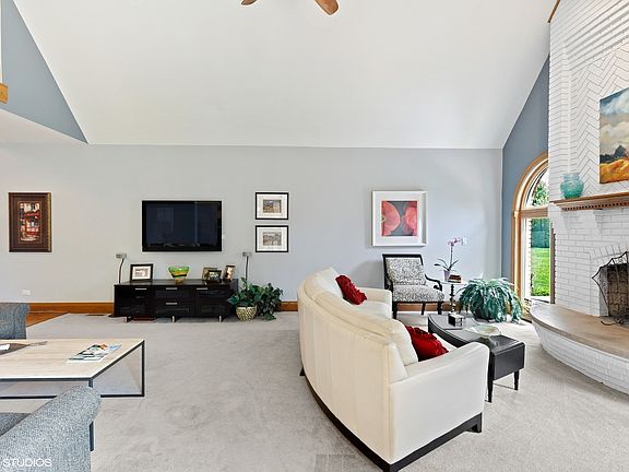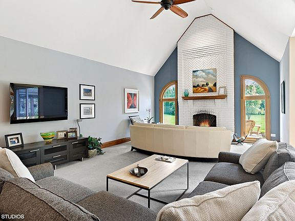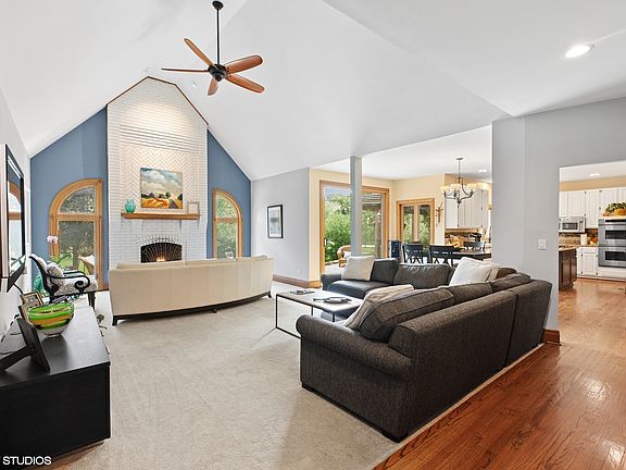 Spacious 4,600 SF 2 Story single family on almost an acre in Deergrove Estates. This 4-Bedroom, 3.1-Bathroom features an open floorplan, 3 fireplaces, a 3-car garage, a fully finished basement, and a large stone paved patio. The main floor encompasses a grand foyer, a formal living room with fireplace and soaring cathedral ceilings, a breakfast room with access to the patio, and a large kitchen. There is also a separate dining room, office with custom woodwork and bookcases, a 2nd fireplace, powder room, and main level primary suite. This large main bedroom features a 3rd fireplace, a walk-in custom closet, a marble bathroom with double vanities, a separate shower with jet sprays, and a 2-person whirlpool tub. The 2nd floor features a loft, and 3 more bedrooms, all with custom closets. 1 has an ensuite full bathroom, and another has a large walk-in closet. The 2,200 SF, fully finished basement features a recreation room, 2 storage rooms, the mechanical room, a fitness room, and a custom wine cellar that has the capacity to hold over 1000 bottles. A new roof was installed in 2016, and new windows installed in 2021.