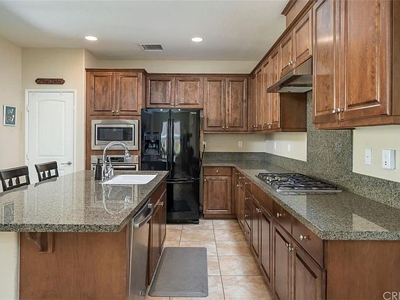 Spacious and bright with lots of windows and high ceilings, this home has a SEPARATE LIVING SUITE which includes a bedroom, sitting room, and bathroom with shower, ALL DOWNSTAIRS. Great room with beautiful kitchen, dining room and family room, and separate living room. Upstairs is a spacious main bedroom complete with a soaking tub and shower, dual sinks, and larger size closet. Also up are 3 additional bedrooms, and a roomy loft appointed with built-in bookshelves. Outside is a patio featuring a fireplace. On the private lot are fruit bearing plants, herbs, and shrubs. HOA features pool and rec area. Did I say that paid SOLAR is included? AND NO MELLO ROOS! Nearby is newer shopping. Come see, you won't be disappointed!