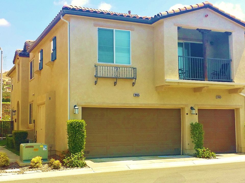 FHA Approved! No Mello Roos and Low HOA! Lowest priced 3 bedroom in Mariposa! Welcome to the well maintained & pristine Mariposa Complex with its Resort Style Pool & Spa, Recreation Clubhouse, outdoor BBQ's & children's play area. This 3 bedroom, 2 1/2 bathroom townhome offers a spacious open concept Dining Room and adjacent Family Room (with cozy fireplace) that leads to the spacious back yard with stamped concrete and rose bushes. Plantation Shutters throughout. Guest bathroom downstairs. Granite countertops in the kitchen with breakfast bar. All bedrooms are upstairs including the Master Suite with a walk-in closet and dual vanity in the Master Bath. Laundry Room with front loading washer & dryer are located downstairs next to the 2 car direct access garage. Close to shops, entertainment and schools.