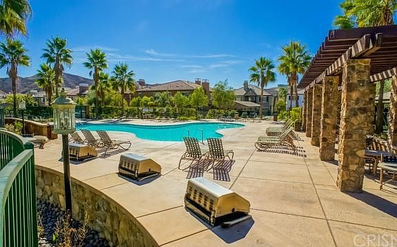 FHA Approved! No Mello Roos and Low HOA. This 3 bedroom, 2 ~ bathroom Mariposa townhome offers an open concept Dining Room and adjacent Family Room (with a fireplace) that leads to the spacious back yard with stamped concrete and rose bushes. Plantation Shutters and freshly painted walls throughout. Granite countertops in the kitchen with breakfast bar. Stainless Steel refrigerator included. Guest bathroom located downstairs. Laundry Room with front loading washer & dryer are located downstairs next to the 2 car direct access garage. All bedrooms are located upstairs including the Master Suite with a dual vanity in the Master Bath. This well maintained Mariposa complex includes Resort Style Pool & Spa, Recreation Clubhouse, outdoor BBQ's & children's play area. Nearby shops, entertainment and schools.