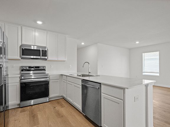 Quartz countertopsStainless steel appliancesCarpet in the bedroom