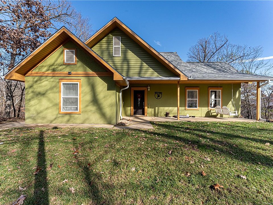Country living in style! This fully remodeled, 3 level, secluded and quiet gem is wrapped in terraced landscaping and hardwoods. Inside there is a top-tier kitchen, 9ft ceilings, scraped hardwood floors, a warm formal dining room, spacious bedrooms, starburst tiled shower, and a country view to fuel the soul. The walk-out basement includes a workout area, third bedroom, and easy access to utilities. Add almost 13 acres, a huge workshop/garage, a small garden, and you've got the best of all worlds here in the Ozarks.