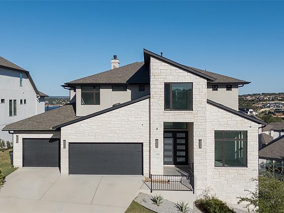 Welcome to 19408 Summit Glory Trail, located in The Summit at Lake Travis community. This property sits at a high elevation, offering privacy and expansive views of the Hill Country and portions of Lake Travis. The home combines functional design with quality craftsmanship and premium finishes throughout, plus gorgeous lake views! The floor plan provides versatility and space for modern living. The primary suite is located on the main floor, featuring a spacious bathroom and walk-in closet. A secondary bedroom and dedicated office are also located on the main level, providing convenience for guests or remote work. The kitchen opens to a large living and dining area, creating a comfortable flow for both daily use and entertaining. Upstairs, the home includes two additional bedrooms and multiple living and entertainment spaces, including balconies designed to take advantage of the surrounding views. Large windows throughout the property allow for natural light and showcase the scenic landscape from several vantage points. Residents of The Summit at Lake Travis enjoy proximity to Lake Travis activities, Hill Country Galleria, local dining, shopping, and major roadways for convenient access to Austin and surrounding areas. The property is zoned to the highly rated Lake Travis Independent School District, one of the most sought-after in Central Texas. This property provides the opportunity to lease a spacious, well-appointed home in a scenic Hill Country setting with modern amenities and easy access to schools, recreation, and retail.