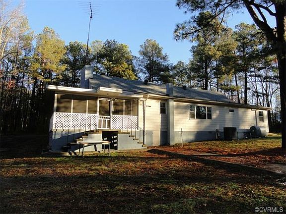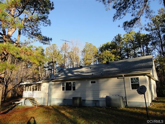 Spacious 4 bedroom, 3 bath Rancher built around a doublewide mobile home on 5 acres. This home has new windows, floor coverings, cabinets and heat pump. There is a large Living room and a huge Family/Great room with a wood insert in the fireplace. The screened back porch is a great place to relax after a long day. There is a oversized 2 car garage and a paved basketball court. This is a 2200 sq ft home which is a lot of home for the money. Only 15 minutes from Colonial Heights