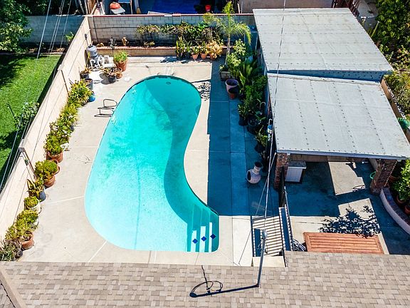 Charming 4-bedroom, 2-bathroom home with so much potential nestled in San Fernando. The front yard has beautiful landscaping and is fenced in with a sliding gate offering security and easy access to the 2-car garage. Enter into a grand space featuring tiled floors, light and fan fixtures, and a lovely fireplace. Plenty of natural light fills the room from the windows, and the space flows from a living room, to dining area, and into a galley kitchen. All bedrooms are spacious with nice floors and closet space. Unwind, entertain, and have fun in the backyard. A large pool surrounded by planters is an oasis perfect for cooling down during summer months. It is fenced in for safety. There is a cement patio for outdoor eating or relaxing, and flows to the detached unit that has been converted into a bedroom/living space. The property is located near markets, shopping, and restaurants. Close to many hiking trails in the nearby mountains, and easy access to major CA-freeways, 210, 118, 405, and 5! Just a little TLC is needed to make this house into your dream home!