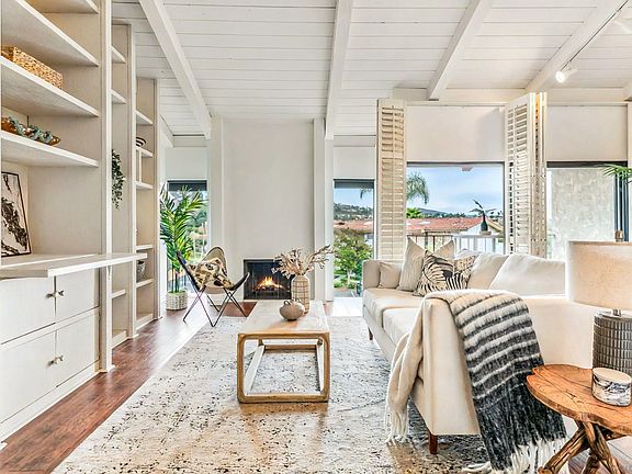Welcome home to Casitas De La Costa, a resort-style community located in the heart of La Costa, featuring lush tropical landscaping with rushing water features throughout, two swimming pools and Jacuzzis, community saunas, and tennis courts. This property is in the ideal location to enjoy the Southern California lifestyle, close to sandy beaches, gourmet dining, shopping, and award-winning schools. This spacious split-level townhome-style condo is truly one of a kind. As you enter the property, you are welcomed by soaring vaulted ceilings and breathtaking mountain views to the East. The great room offers ample room for living and dining, with a built-in wet bar, built-in entertainment center, wood shutters, and a pass-through countertop to the kitchen. This property features two fireplaces and two private balconies, one conveniently located on each floor of the home. The oversized primary suite offers extra room for a seating area next to the cozy fireplace, a private patio area to take in the San Diego sun, a lavish bathroom with sunken soaking tub and shower, a massive walk-in closet, a white wood vanity with granite countertop and private in-unit laundry. This property is within close proximity to the best Carlsbad has to offer, including South Ponto Beach, South Carlsbad State Beach, Omni La Costa Resort and Spa, The Forum Shops, The Beacon La Costa Shopping Complex, Equinox Gym, Cinepolis Luxury Cinema, Vons Supermarket, Carlsbad City Library, and so much more. All this, and low monthly HOA dues too! This property truly has it all.