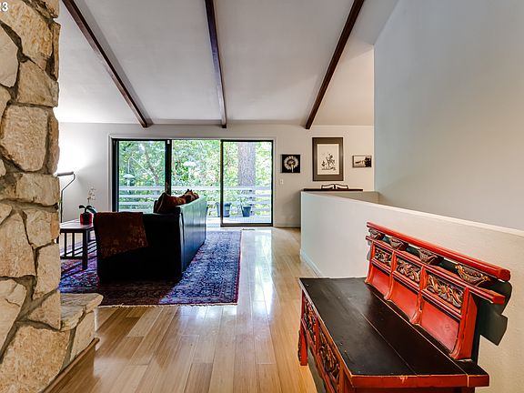 An updated classic Mid Century home on over half of an acre surrounded by nature. Nested in a prime southeast Eugene neighborhood, the property features two spacious living rooms with two wood burning fireplaces, one on each level, vaulted ceiling, exposed beams, and primary bedroom and second bedroom/office on the main level. The main level living room opens to a large deck into nature full of sunlight and shade, birds singing, and cleanest air purified by various pine trees. The main level deck is also connected to the dining room through a greenhouse, perfect for seeding and winter outdoor activities. The large chef's kitchen has been completely updated with quartz countertops, brand new luxury vinyl plank flooring, newer cabinets, and newer stainless appliances. The downstairs has a separate entrance through the covered deck to the family room, two bedrooms and a full bath. All the bathrooms are updated including a walk-in shower and tub in the primary. The bamboo hardwood floor throughout. Invisible fence was installed around the property for pets? safety. South Eugene school district including the highly ranked Camas Ridge Elementary School (construction to be completed in 2024).
