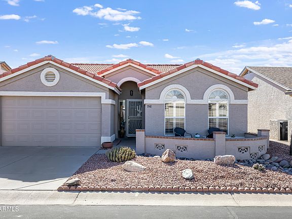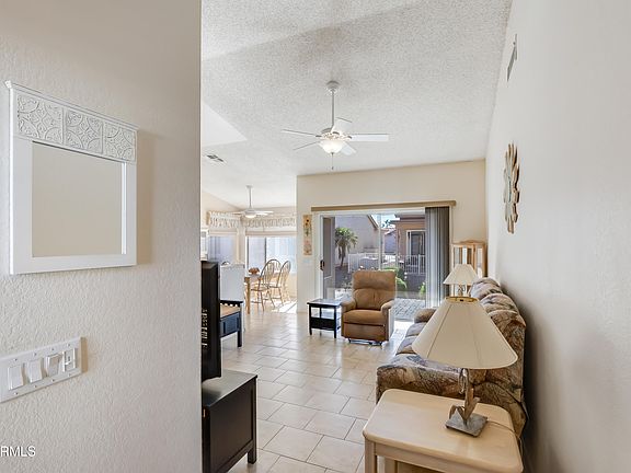 Popular 2BR/2BA Carmel model in the 55+ Sunbird Golf Community. Welcome home! Curb appeal and nicely landscaped front yard, with a decorative walled patio area to the right of the entryway. Walk inside and the charm continues with an open floor plan, vaulted ceiling and light-colored paint palette. Tile flooring throughout the main living areas, shutters and shades for window coverings, ceiling fans. Kitchen has newer white appliances, clean laminate countertop and tile to finish it off. Back patio is south facing with a covered area and has been extended with pavers for a secondary sitting area. This one-owner, extremely well-maintained home has a NEW ROOF, new hot water tank, new reverse osmosis, and the HVAC is only 5 years old.