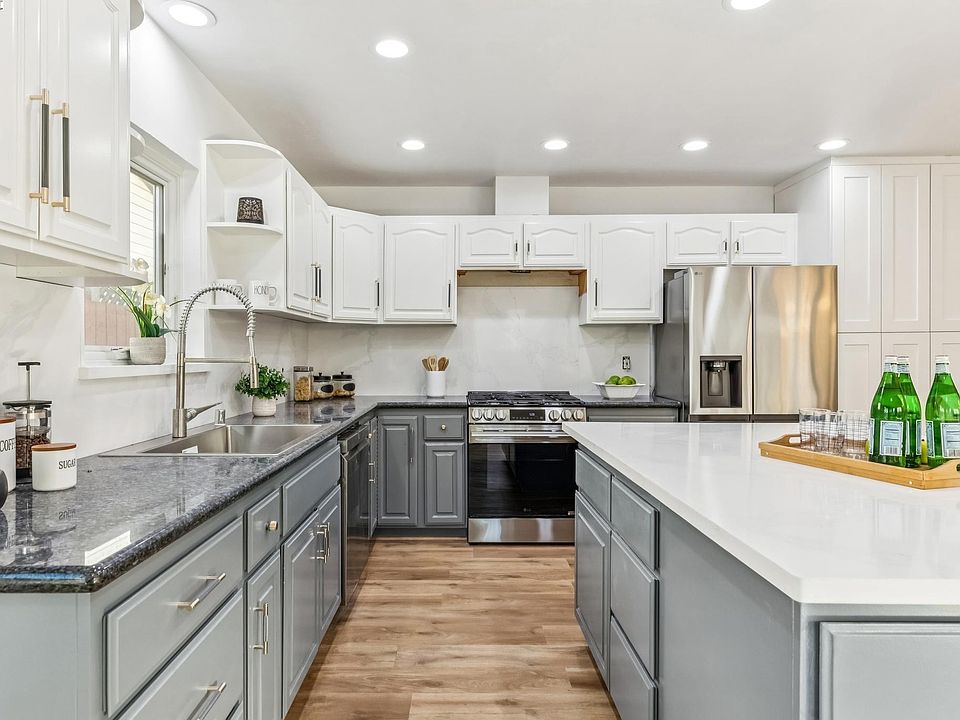 Seldom available one level 4-bedroom home by South Shore Beach! Featuring 2,081 sq ft, the home offers easy access to the island’s best amenities: just two blocks to the beach! The sun-washed open floor plan connects the kitchen to the dining room, to the bright living room featuring a brick fireplace, wood floors, and large picture window. The updated open kitchen features an island and ample cabinetry. The primary bedroom includes a walk-in closet and an en-suite with updated bath. The three additional bedrooms each are spacious with generous closets. The private backyard with mature plants is great for entertaining. 2-car garage. Recent Improvement includes new Anderson windows, luxury vinyl floorings and bathroom vanities. Close to Alameda’s beaches, bike paths, volleyball courts, top schools and South Shore Shopping Center.