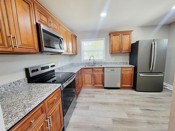 Beautiful landscapingNew rangeNew cabinetsAwesome fenced in backyard