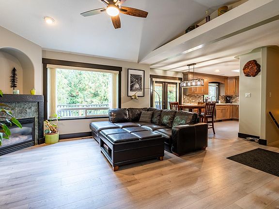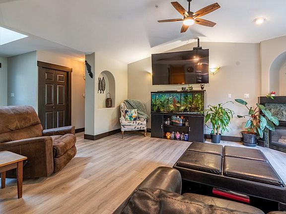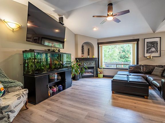 Cozy gas fireplaceUpdated kitchenQuartz countertopsStainless-style appliancesPrimary suiteWalk-in closetRedone basement
