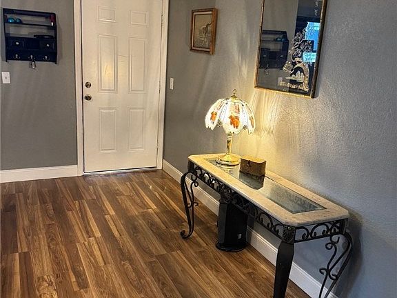 What a great home for the price! Look what's been done here, New kitchen in 2021, new roof in 2022, new bathrooms in 2023, plumbing redone 2014, fence added 2010, shed permitted in 2021.  Seller also redid most of the flooring, no carpet anywhere! You will love this layout, with two large bedrooms, 2 full baths and a separate den off the kitchen area.  The kitchen has new grey shaker style cabinets, epoxy countertops, granite counters to the right of the stove, tile back splash, color control under counter lighting, nice appliances, pantry, drink refrigerator and coffee bar. The living room, dining room and main bedroom suite all have crown molding.  There is a large yard and a nice sized  screened in covered patio.   The home is not in a flood zone and there was no damage to the home from any of the hurricanes that the sellers are aware of and no flooding. The home is currently on well and septic, but the city says this home will get city water and sewer sometime next year, this will be great for the new home owners. There is a one car garage that has a wall making a separate laundry room and large storage area.  This can easily be converted back to a one car garage with laundry area in garage.  There is also a large 15x9 storage building in the back yard that stays with the home and a double gate for easy boat or RV access to the back yard.  The location here is a very quiet low traffic street which no road noise.  Not sure you can find a better location for this price.