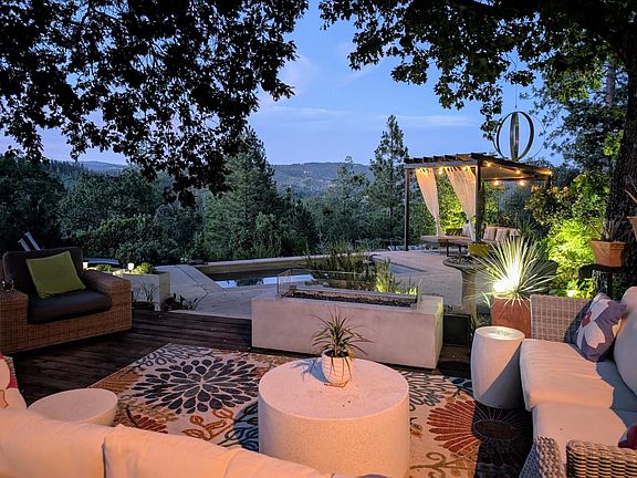 Nestled at the end of the road, this tastefully appointed 2-bedroom, 2-bathroom retreat offers the perfect blend of modern updates and rustic charm on a 2.2 acre lot, just enough land for outdoor living, curated gardens, and the native landscape to thrive. Only 1.5 miles from the heart of downtown Murphys for your tasting-room strolls, retail therapy and sweet & savory delights, this property promises ultimate relaxation with jaw-dropping sunrise views peeking over the rolling Sierra foothills. Inside, a modest 1,400 square-foot layout feels expansive and inviting, thanks to vaulted ceilings and a high bay window that floods the space with natural light, creating a bright and airy ambiance year-round. Unwind in the living room by the sleek Danish woodstove on crisp evenings, or retreat to the cozy den loft for movie nights. At the heart of the home, a chef's kitchen with high-end appliances and honed granite countertops add a touch of sophistication. Whether you're hosting intimate gatherings in the dining area or savoring solo mornings with coffee at the peninsula, every detail whispers elegance and ease. Outside, paradise unfolds - and it's the crown jewel. Lounge by the sparkling plunge pool, gather under shaded trees, gazebos, or fire up the grill in the dedicated outdoor dining area. Multiple gathering spots - from fire-pit nooks to tranquil patios - beckon for al fresco adventures with friends and family, while the raised-bed vegetable garden area and greenhouse are calling out for your green thumb. Practical perks abound with a 2-car garage, climate-controlled insulated she-shed office for seamless remote work, utility building with hobby space and storage, plus an additional outbuilding for all your toys and gear. Your own private well with 5,000 gallons of water storage and an automatic backup generator keep you showered, powered, and prepared for anything. This isn't just a home - it's a lifestyle. Are you ready to claim your slice of gold country magic? Schedule a private tour today.