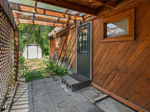 This home is quite a special offering! Tucked away on a private stretch of South 8th Street West, this one-of-a-kind Missoula residence offers an eclectic blend of rustic charm, comfort, and potential. With its ski lodge inspired design and larch wood trimmed interior and exterior, this home radiates warmth and individuality at every turn. The larch wood siding was sourced locally when the home was renovated and the stone surrounding the gas fireplace was also crafted from rocks sourced in the area. This gas fireplace anchors the living room and provides another layer of warmth and inviting Montana character. The interior of this residence provides 725 square feet of thoughtfully designed living space. In addition to a nicely sized galley kitchen, this home also offers a stand-alone dining room space as well - a unique feature for a smaller residence. A new owner may consider converting this space to an in-home office or a second bedroom on the main level. In addition to the flexibility of this lower level, you'll certainly appreciate the distinct and custom spiral wooden staircase. This unique feature leads to the lofted bedroom and private second-story deck. From here, views of Mount Dean Stone and Mount Sentinel create a stunning natural backdrop for relaxing evenings and quiet mornings. A main-level bathroom, covered carport, adjacency to the Missoula irrigation canal system, and a generous yard of nearly 5,000 square feet enhance both livability, value, and potential with this property. Perfectly situated near Benson’s Farm, Franklin Park, Grist Bakery, and the well-loved South 8th Street West micro-park, this property has a very special balance of privacy and convenience. Affordable, full of character, and brimming with potential, this residence is truly a rare find in the heart of Missoula.