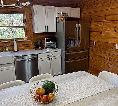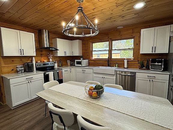 Our home was built in 2015 and has the charm of a log home with all the amenities of a new/modern home with a huge new kitchen and all stainless-steel appliances, new bathrooms, floors, and updated bedroom closets.