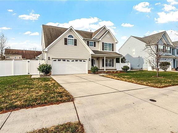 Lovely well-loved 4 bedroom home situated on a quiet cul-de-sac street offering lots of natural light in the many spacious rooms along with a fenced in back yard ensuring privacy while being centrally located with ease of access to shopping, schools, commerce, military bases, & much more, with just a short drive to get away to the ocean! The eat-in kitchen boasts granite countertops along with SS appliances & pantry along with a pass-through opening into the vast family room anchored by a gas fireplace (with blower). The dining & living room offers even more space. The primary bedroom has a large walk-in closet & en-suite bath equipped with a shower, garden jacuzzi tub, & double vanity sinks. Laundry closet is just down the hall as well! Pull down ladder attic access in addition to attic space via the primary closet...lots of storage!!! Oversized 2 car garage contains additional overhead storage shelf & Rinnai tankless gas water heater!