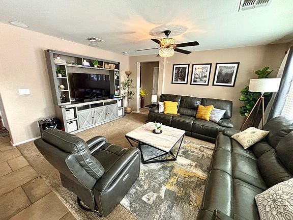 FOR RENT in Fireside at Norterra is a Del Webb all age lifestyle community that offers residents a large community center with a large gym w/ indoor climbing, lap pool, spa, kids play pool, tennis and basketball courts, hiking and biking trails with beautiful mountain views and stunning desert landscaping. The amazing home has a kitchen that features corian countertops, stainless steel appliances and a walk in pantry. Nest Thermostat. Cool to the touch dual pane windows. Energy efficient home. Upstairs laundry. 4 Bedrooms upstairs and one bedroom downstairs, huge backyard with turf,pavers, and a pergola, enjoy the outdoor lifestyle