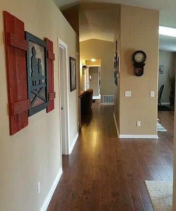 YOUR MODERN, RANCH HOME AWAITS! Outside and in, EVERYTHING has been thought of! Sweeping concrete driveway affords not only a turn- around in front, but continues all the way around to the very back of this almost 1 Acre LOT! Play in the Lush, Green Grass in front AND back!!! Inside, you will be CHARMED by Warm Wood Laminate FLoors and tasteful paint, little details make a BIG difference. You'll NOTICE almost EVERY ROOM has CUSTOM POT/DECOR SHELVES, and CEILING FANS. THE KITCHEN.... WOW! A Gorgeous Tile Back splash compliments the CUSTOM GRANITE counters which POP against the Dark Cabinetry,giving Modern Elegance to this Country Home.Off the kitchen is a perfect sized Dining Area. At one end of the home, you will find your MASTER RETREAT complete with super Deep Closet, Full Bath with Double sinks, FRENCH DOORS to your Side Yard, and BAY WINDOWS. Don't for get to Look UP in each Bedroom for the Decor Shelves!!! You will find 2 more rooms and the Guest Bath. As you make your way across you will find TWO LIVING ROOMS. The first has a River Rock Fireplace accompanied by a CUSTOM MANTLE and COZY SEATING area. The second offers ample space for a Large Couch and entertainment center. STILL MORE? Yes! A HUGE LAUNDRY/MUD Room and 4th Bedroom w/Closet!
