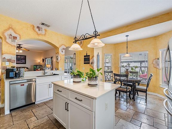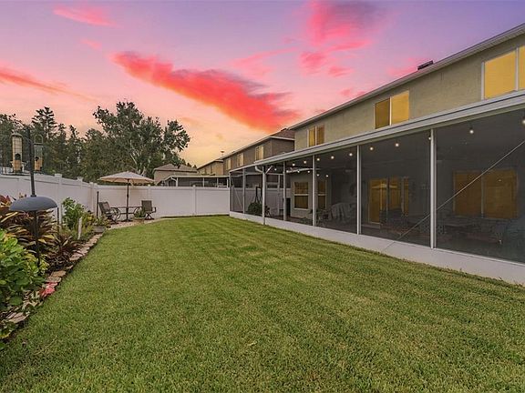 Heritage Harbor - Golf course community! This home has 6 bedrooms/3 Bathrooms/2 Car Garage and very large covered Lanai with a fenced in back yard for privacy (or 5 bedrooms with a Den/Office with a closet) One of the guest bedrooms is downstairs, the Primary Bedroom is upstairs along with the other guest bedrooms. This Neighborhood is located in a Great Location with "A" RATED SCHOOLS This home features a combined Living Room and Dining Room, Open Family Room to the Kitchen and lanai, A completely Renovated kitchen with plenty of cabinet space, Soft close drawers, Trash can drawer, Quartz Counter Tops, The 2025 kitchen remodel is particularly exciting, as it is a great space for cooking and entertaining. The impact of the new front door in 2024 will likely enhance the home's curb appeal and security and the addition of a new patio screen in 2024 will provide a comfortable outdoor living area, allowing for enjoyment of the lanai without the nuisance of insects. The major systems of the home have also been updated, with the upstairs AC and new water heater installed in 2023, which means energy efficiency and reliability for the next few years. The carpeting in the bedrooms were replaced in 2023/2024, contributing to a fresh aesthetic. Prior updates like the water softener installed in 2021, the NEW ROOF in 2019, and the fence from 2018 also indicate that the property has been well-maintained. The two guest bathroom remodels completed in 2018 add to the home's value and comfort. The huge covered lanai is a fantastic feature, providing a perfect setting for outdoor gatherings or quiet relaxation. Overall, this property appears to be a well-cared-for home with many desirable features that cater to modern living. Very Low HOA Fees, and the CDD fees are included in the tax bill. Homeowners can experience the many amenities at Heritage Harbor's 11,000 square-foot Harbor Town Clubhouse. The Community Residents can enjoy a wide variety of resort style features.... including a fitness center, library, activity center, playground, quarter acre Olympic size swimming pool with a thrilling three-story water-slide, bar and restaurant on the right side as well as a pavilion on the pool deck that can be rented for parties and gatherings, tennis courts, soccer field in the back with a walking path, and volleyball court, basketball hoops, and outdoor rollerblading rinks and of course the golf course and "A" RATED SCHOOLS plus the ramp for the Veteran's Expressway....Motivated Seller!