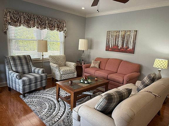 A full hallway bath then leads to the first bedroom. Large main bedroom with double sink main bath, jet tub and separate shower. Large walk-in closet with built-in shelving and hanging. 2-car garage with plenty of storage space. The community center features exercise/weight room, pool, meeting and event areas and outdoor game courts.