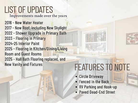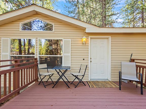 Private tree-studded lotJust under an acreSurrounded by ponderosa pinesSpacious front deckVaulted ceilingsCarpet-free laminate flooringPrimary shower
