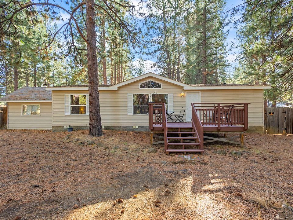 Rare opportunity in Deschutes River Woods! This well-maintained home sits on just under an acre with NO HOA, offering endless possibilities. On a quiet paved dead-end street surrounded by ponderosa pines, you're minutes from trails yet close to town. Inside, enjoy vaulted ceilings, carpet-free laminate flooring, and some really nice updates throughout including the primary shower! The spacious front deck overlooks your private, tree-studded lot. You want a STANDOUT Feature? A bonus outbuilding ready for your creativity with ideas such as office space, studio, gym, or workshop. With no HOA restrictions, bring your RV, hobbies, and dreams! This sought after area commonly known as ''DRW'' is 6 mi to Bend, 5 mi to High Desert Museum, 19 mi to Mt Bachelor and too many lakes and trails to list! {some photos are virtually staged}