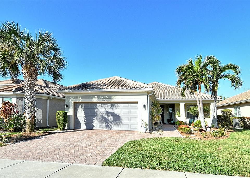 Lovingly maintained by the original owners and move-in ready. Welcome to your low-maintenance haven, designed with seasonal residents and empty-nesters in mind! Ideally on a shimmering lake lot in the highly desirable planned community of Islandwalk. This alluring residence is defined by a serene simplicity of design and offers superb flow and functionality. Flooded by an abundance of natural light and offers a neutral palette that allows you to create your masterpiece. The heart of the home is undoubtedly a chef’s kitchen equipped with plentiful wood cabinetry, stainless appliances, quartz countertops and backsplash, center island, oversized composite kitchen sink, spacious breakfast bar and a cozy breakfast nook. The ideal setting where friends and family can gather to share fun conversation and culinary delights. Adjacent to the kitchen is an open and inviting great room that encourages relaxation and social gatherings. The interior flows seamlessly to an expansive decorative paver outdoor screed-in lanai which beckons alfresco dining and entertaining. The primary suite is a tranquil retreat, and the guest bedroom offers comfort and privacy for family members or guests. A few of the many notable special features in this fabulous home include hurricane protection, Storm Smart remote hurricane screening on lanai, crown molding throughout, retractable front door screen, speckle epoxy flooring in garage, overhead bike pully system and storage shelving, hard surface flooring with no carpeting which is free of allergens and also great for pets, decorative fans and lighting fixtures, and new roof and roof vents in 2023. Islandwalk proudly boasts the ultimate in amenity-rich resort-style living featuring 24-hour guard gated security surrounded by sparkling lakes and lush manicured landscaped recreational and biking trails, two clubhouses, event center, heated lagoon and heated lap pool, eight Har-Tru tennis courts, 12 pickleball courts, basketful and two bocce courts, activities and craft room, two state-of-the-art fitness centers, dog park, playground, community garden and two community kitchens, lending library and a full-time activities director. With its unparalleled amenities and idyllic setting in a 24-hour guard-gated community, this exceptional home epitomizes resort-style living at its finest. Convenient to beaches, golfing, fishing, downtown historic Venice, Wellen Park, State College of Florida Manatee-Sarasota Campus, Atlanta Braves spring training CoolToday Park, restaurants, shopping, medical facilities, houses of worship, U.S. 41 and Interstate 75.