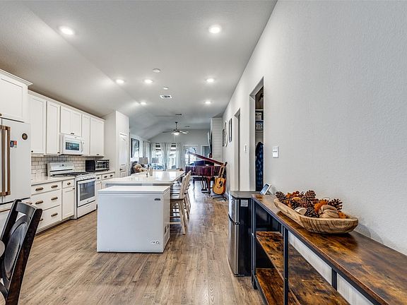 Nestled inside Amira subdivision, one of Tomball's most sought after community. This delightful one-story home boast a classic brick exterior, 3 bedrooms, 2 bath exuding timeless appeal and warm invitation. The charming front porch invites you to unwind or greet neighbors This feature adds both curb appeal and a sense of community to your new home. The moment you enter the home you'll appreciate the airy ambiance created by the high ceilings, allowing natural light to flood the open living space.The HEART of this home its the impressive kitchen, featuring exquisite quartz countertops and a massive island that invites gatherings. Take advantage of the built in refrigerator that blends seamlessly with the color coordinated designer cabinets. The farmhouse sink adds a touch of rustic elegance making this kitchen a focal point of the house. Huge backyard! This home is not just a place to live, its a lifestyle waiting to be embraced. Don't miss your opportunity to make it yours!