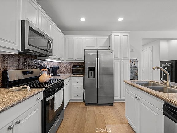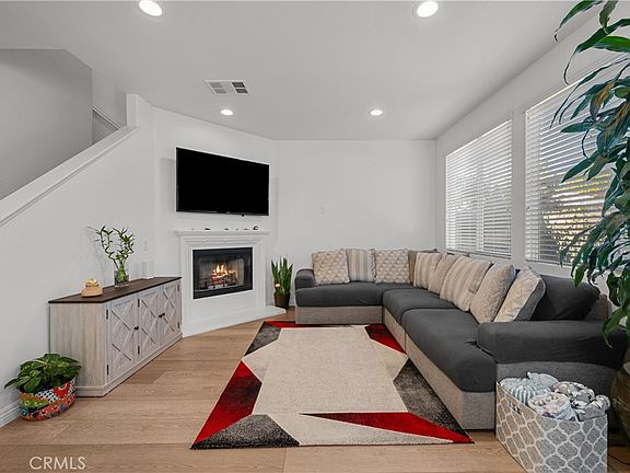 Welcome to this bright and airy townhome in the highly sought-after Mariposa community! Featuring 2 bedrooms, 2.5 bathrooms, and 1,440 sq ft of living space, this home offers comfort and style in a prime location. The open living area is filled with natural light and features a cozy fireplace and updated laminate flooring. The kitchen is beautifully upgraded with white cabinets, granite countertops, a tile backsplash, and under-cabinet lighting—perfect for both everyday living and entertaining. A designated laundry area and a dining room with a charming light fixture add to the home’s functionality and charm. Upstairs, each bedroom has its own private bathroom. The primary suite includes a spacious walk-in closet, creating a true retreat. Step outside to your private yard with mature trees, offering just the right amount of shade and privacy—rare to find in a townhome setting. Located just across from some of the hottest new restaurants in Saugus, this home combines convenience, community, and comfort.