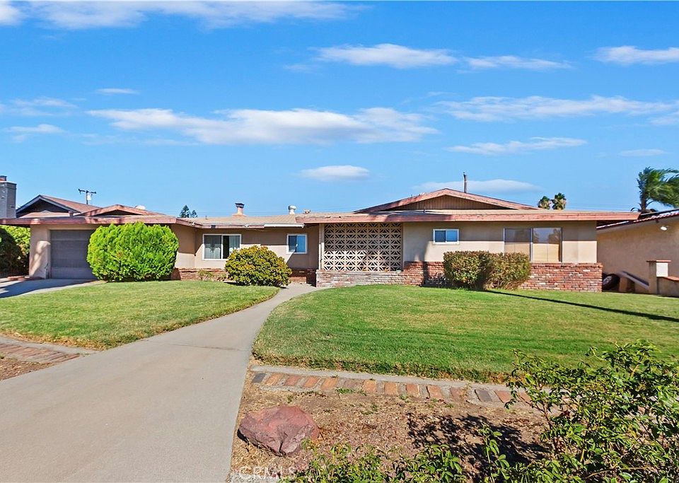 Premium location North of 210 Freeway in well established neighborhood. Desirable single story ranch style home on an oversized 9600 sq ft lot. Offering an updated kitchen with lots of cabinet and counter space, breakfast bar, dining area, spacious living room with cozy fireplace surrounded by rock hearth and facade, dual paned slider opening to back yard, wood laminate flooring in most rooms, large master bedroom with adjoining full bath, dual paned windows, mirrored storage closet in hallway as well as mirrored wardrobes in all bedrooms, and much more. Spacious back yard with HUGE pool and spa. Property has been a work in process that still needs some substantial work, but has tremendous potential and offers the right buyer an amazing opportunity to make it their own!