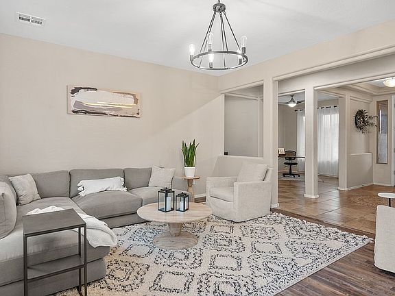 Excellent home in Emperor Estates! Home is well located in the subdivision, away from Rittenhouse on a quiet street towards the rear of the neighborhood. Home offers great curb appeal with side entry garage and front patio. Home is in excellent condition with fresh interior paint and new carpet and vinyl flooring, sliding glass door, and appliances. Move in ready! Nice floor plan features foyer upon entry leading to office/den, formal living room, formal dining. Kitchen opens nicely to family room with soaring 2 story ceilings. Master bedroom is oversized with very large walk-in closet. Master bath has dual vanity and separate/shower tub. Resort style backyard has fireplace, play pool and extended covered patio.