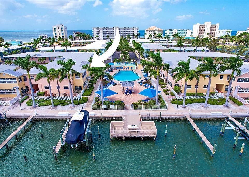 Coastal paradise awaits with fully furnished condominium in Indian Shores. Discover the epitome of coastal living in this stunning second-floor condominium, situated to offer breathtaking views of the Intracoastal Waterway, marina and pool. This prime location in Indian Shores, between Gulf of Mexico and Intracoastal Waterway, promises a lifestyle of relaxation and adventure. This fully furnished, turnkey beach condominium features one bedroom, one bath and a bonus sunroom that bathes the space in incredible natural light. Meticulously updated with coastal-inspired décor, the open floor plan showcases wood-inspired luxury vinyl plank flooring throughout, gleaming white crown molding, and stylish white wood cabinetry, with fashionable quartz countertops. The spacious bath is equipped with a walk-in shower with fully custom tiled walls and upgraded frameless glass doors. The living room, centrally between dining area and sunroom, has a leather sofa and recliner with a flatscreen TV, making it a spot for entertaining. The sunroom, complete with a sofa and high-top dinette table, or it can serve as an additional guest area or cozy office. The fully equipped kitchen boasts quartz countertops, stylish backsplash, full-size appliances and coffee bar, ensuring all your culinary needs are met. Barefoot Beach offers a waterfront oasis with lush landscaping and an array of amenities, including a heated pool and sun deck, a new community fishing dock, barbecue grills, outdoor dining areas, multiple laundry facilities on every floor, bike storage and a club room. Private boat slips are available for rent or purchase, and there is beach access directly across the street with a signaled crosswalk on demand. With no rental period restrictions, this property is an ideal investment opportunity, second home or primary residence, allowing owners to enjoy the flexibility of using the on-site property management or choosing their own rental company. Enjoy the quaint beach town of Indian Shores, where you’ll find nearby dining, shopping, miniature golf and pristine white sugar sand beaches. The Suncoast Beach Trolley is near your door, providing easy access to various attractions along Pinellas Beach Coast. Explore the vibrant nightlife, museums and famous pier in downtown St. Pete, all just a short drive away. With two international airports nearby, TIA just 45 minutes away and PIE only 25 minutes, you’ll have easy access to travel. Don’t miss out on this coastal dream! Contact us today to schedule your private showing.