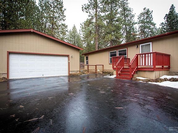 Room for everything! Enjoy this lovely 3 bedroom, 2 bath home on .92 fenced acres. Home has laminate flooring, built-in dog door, new blinds in the vaulted living room, and includes all appliances. Great outdoor patio for grilling and entertaining. The oversized, 2 car garage is perfect for all your gear! There's even additional covered parking for a trailer, boat, or toys. Horseshoe paved driveway has additional room for RV parking. Easy access to Hwy 97 on paved roads. This home offers a quiet escape in the pines of Deschutes River Woods!