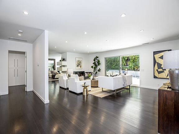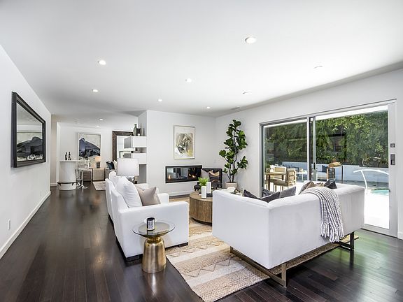 Renovated to the ten's is this single-story contemporary with an open floor plan, spacious two bedrooms, two bathrooms, 2750 square foot home. The kitchen features custom leather banquet built-in table, Sub-Zero, Bosch and Viking appliances, and custom laundry room. There are bamboo floors throughout, new windows, Fleetwood sliding doors, and raised ceilings. The spacious living room flows past the two-sided fireplace into the family room with a wet bar. The master bedroom suite has been enlarged and features all custom closets, new master bath which includes a steam shower, double rainforest shower head, drainless shower and sink, heated floors, and Toto bidet toilet. The very private backyard features mature landscaping, new pool, and new concrete deck. The house has a new tankless water heater.