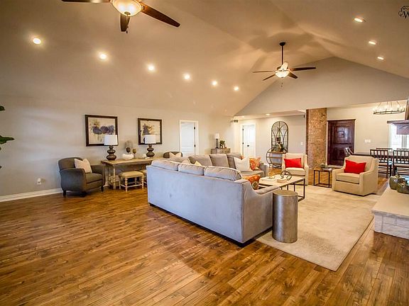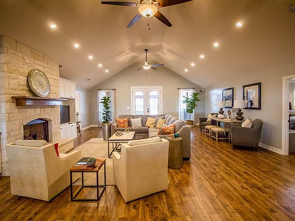 Your dream Lakefront listing! 4 bed 3.5 bath fully remodeled home in 2017 on 4.97 Acres in Holliday ISD. 2 car attached garage and 2 car carport off 30x50 shop w/electrical- concrete driveway. Renovations throughout with no expense spared- custom work everywhere. Kitchen is your dream w/high end SS appliances, quartz & stunning tile back splash. 2 indoor fireplaces- 1 in expansive living room & 1 in the indoor patio room. Wine bar. 2 recent WHs. 2 recent HVACs. Recent roof. Additional 6 Acres avail for 60K.